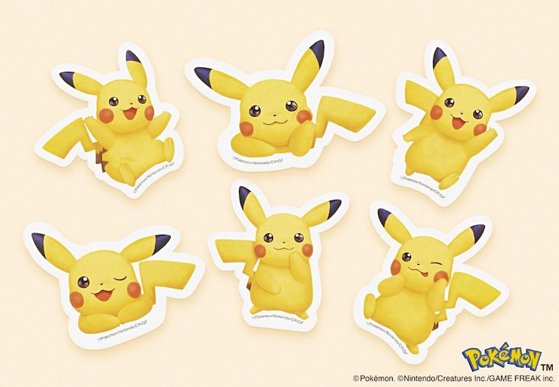 ピカチュウ缶にはスペシャルステッカーが付いてきます。ステッカーのデザインは全部で6種類。どの絵柄が出るかはあけてみてのお楽しみです。