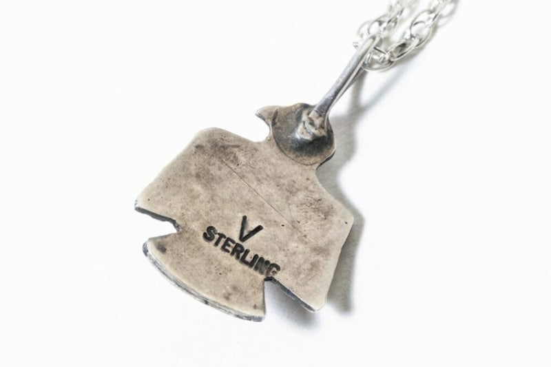 ペンダントヘッドの裏面にはシルバー925を意味する「STERLING」を表記。Vの刻印は作者であるアーティストのイニシャルかと推察されます。