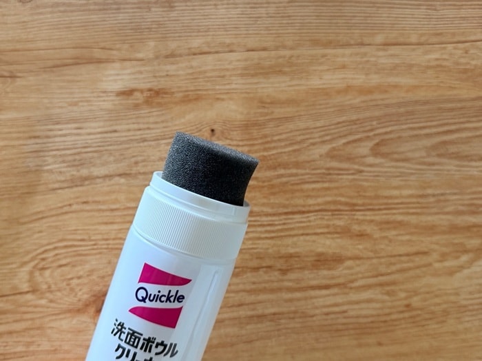 パカッと蓋を外すと、スポンジ状になっています。このスポンジを、洗面ボウルにゴシゴシして、洗い流すだけ!