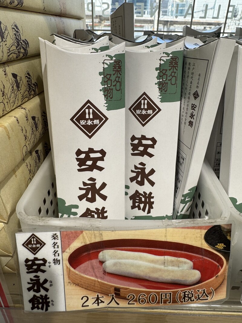 これ、名古屋名物なのかと思ったら、違うようなのです。三重県の名物なのです。つまり、三重県は名古屋経済圏だから、安永餅が売られているってコト!? それにしても、売られまくりスギィ!