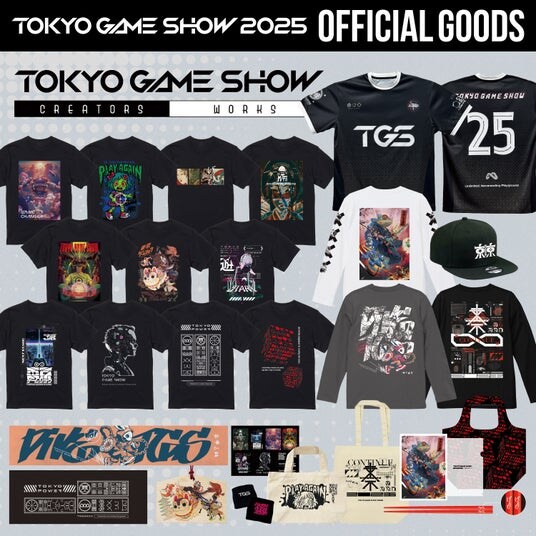 マサヤ・イチが運営するアートスクール「Graphic Artist Guild」では、在籍する生徒を対象にデザインの公募を実施しました。全100点以上の応募作品の中から選出されたデザインは、マサヤ・イチがプロデュースする公式グッズライン「TGS Creators Works」 として採用され、東京ゲームショウ2025の会期中に会場内で販売されます。 若手クリエイターの新たな感性が反映されたデザインは、ここでしか手に入らない限定アイテム。これまでの会期でも毎年完売を記録しており、今年も高い注目を集める人気アイテムとなることは間違いありません。
