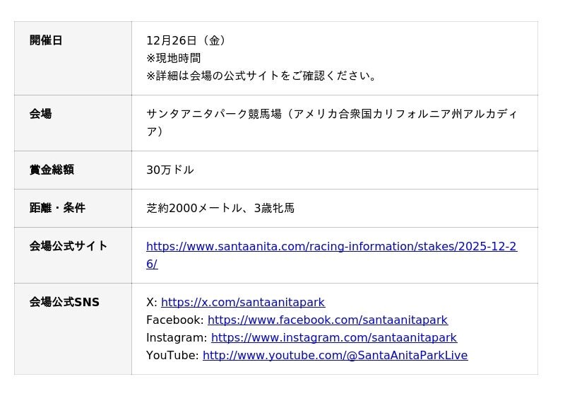 ゲームの企画・開発・運営事業を展開する株式会社Cygames(以下サイゲームス、本社:東京都渋谷区、代表取締役社長:渡邊耕一)は、アメリカ・サンタアニタパーク競馬場を運営する1/ST傘下のLos Angeles Turf Clubとパートナーシップ契約を締結し、12月26日(金)に開催される「American Oaks(以下アメリカンオークス)」のメインスポンサーに就任しました。この就任に伴い、「アメリカンオークス」をサイゲームスの冠レース「American Oaks presented by Cygames」として開催します。