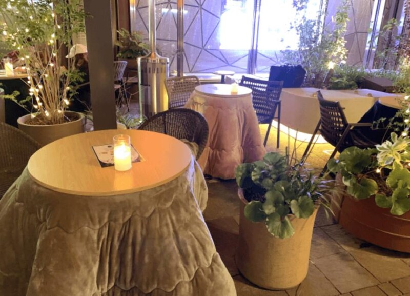 新丸ビル 仲通りテラスに、期間限定でこたつが登場。いつものテラス席が、ポカポカのこたつ仕様に変身しています。