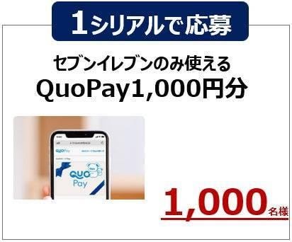 応募に必要なシリアル数は1つ。セブン‐イレブンでのみ使用可能なQUOカードPay(1000円分)が抽選で1000人に当たります。