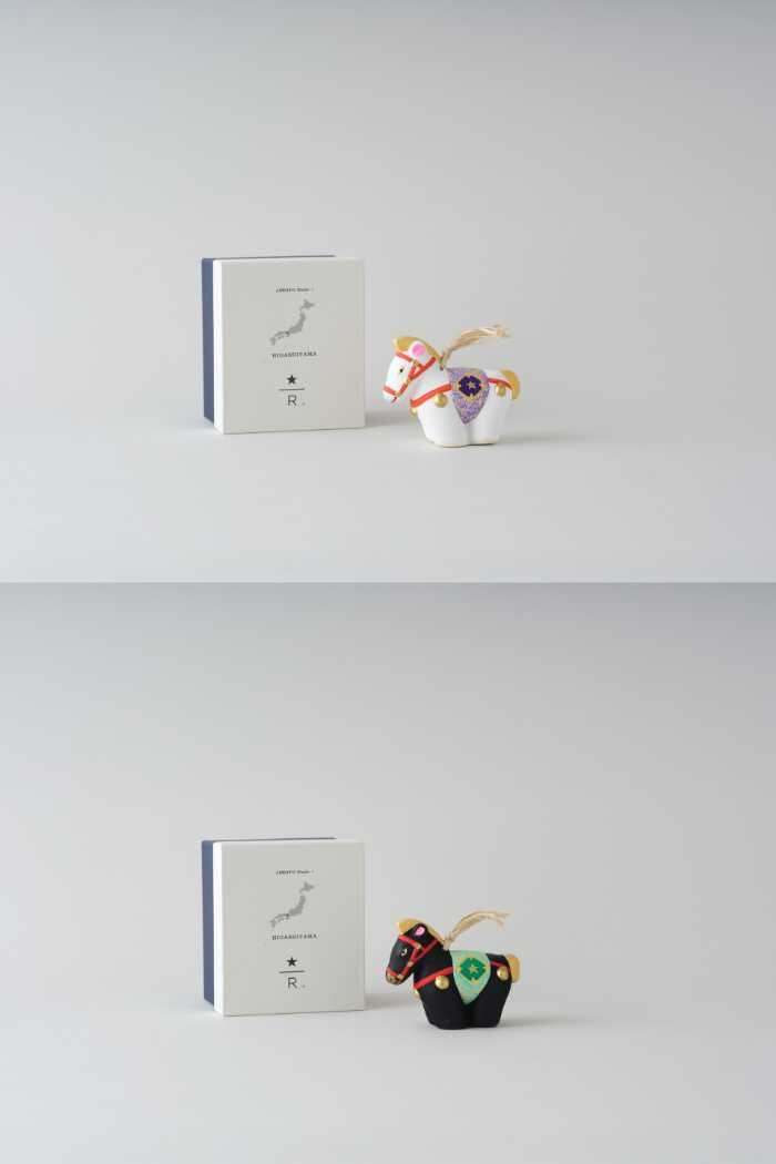 特に「干支土鈴午白」と「干支土鈴午黒」の2種類は、京都らしい紫色の胴掛けをまとった馬が美しいフォルムを誇ります。