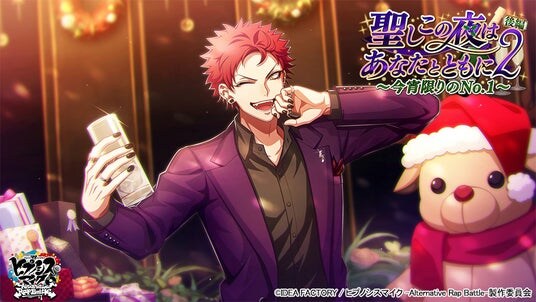 スマートフォン向けゲームアプリ『ヒプノシスマイク -Alternative Rap Battle-』にて、イベント「聖しこの夜はあなたとともに2 後編~今宵限りのNo.1~」を本日開始いたしました。