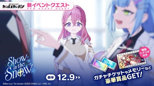 合同会社EXNOA(本社:東京都港区、CEO:東條 寛、URL:https://games.dmm.com/)と株式会社KMS(本社:東京都品川区、代表:梶原 健太郎、URL:http://kms3.com/ )が贈るマブラヴ最新作『マブラヴ ガールズガーデン』(以下、マブガル)が12月9日(火)より、新イベント【Show in the Snow】を開始したことをお知らせいたします。