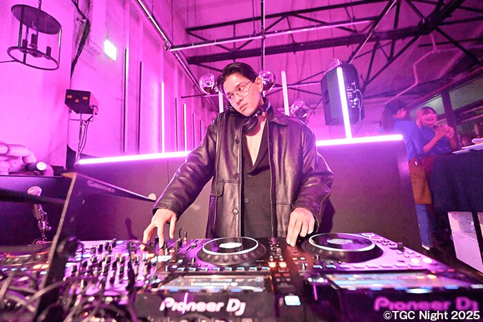 都会的で洗練されたビート、身体を自然と揺らしたくなるグルーヴ、そして夜が深まるにつれ増していく没入感──。DJが変わるたびにフロアの“色”が塗り替えられていき、音と光のレイヤーが重なり合うように熱量が高まり、TGC Nightならではのスタイリッシュな空気が会場全体に広がった。