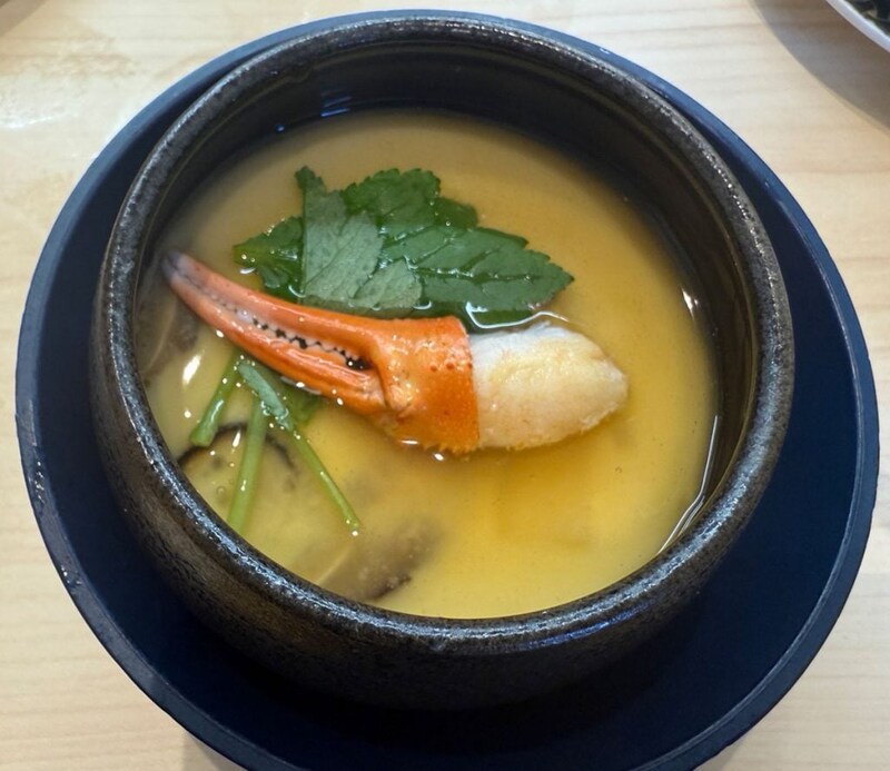 サイドメニューの2種のずわいがにの贅沢茶碗蒸し(330円)。紅ズワイガニの爪と、本ズワイガニの身が入った茶碗蒸し。トロっとした和風あんがカニの風味を引き立てて、なんとも贅沢~。