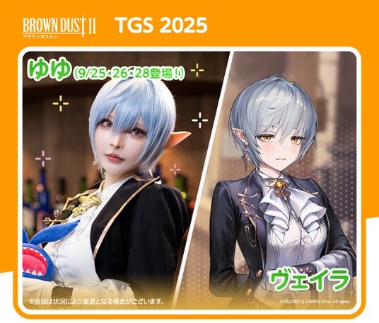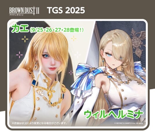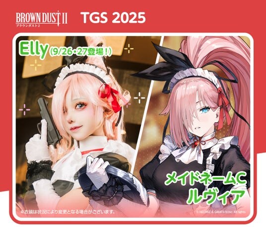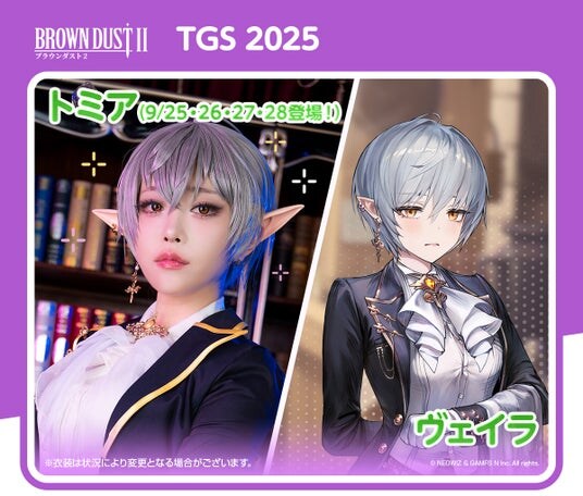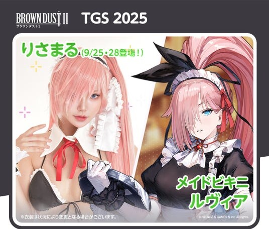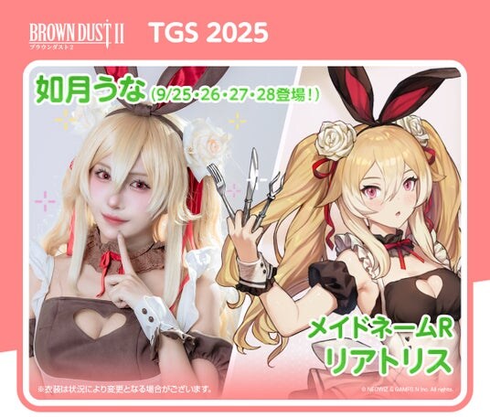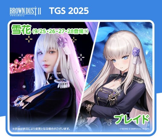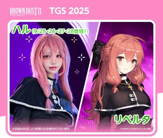 ブースでは、ブラウンダスト2のキャラのコスプレーヤーが、総勢10名(交代制)ほど登場し、お出迎えいたします。