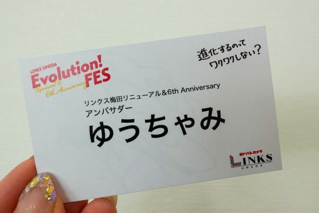 就任式の最後には、「名刺交換は初めてなんです!」と照れながらも記者や関係者に名刺を手渡す一幕も。ゆうちゃみさんの気さくな人柄で会場は終始和やかでした。