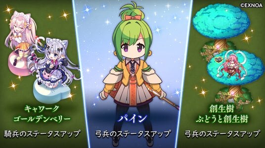 期間中のイベントでは、『ふるふる』コラボ限定の進軍スキン「パイン」や、コラボ限定オーナメント「ゴールデンベリー」「キャワーク」、拠点スキン「創生樹」と「ぶどうと創生樹」を獲得できます。