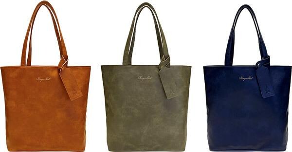 合皮素材で高級感のあるトートバッグ。ブラウン・カーキ・ネイビーの3色があり、どの色が入っているかはランダム。普段使いにも使いやすく、福袋ならではの限定デザインです。