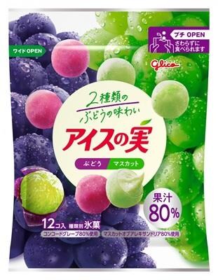「アイスの実 ぶどうマスカット」は、コンコードグレープ果汁とマスカットオブアレキサンドリア果汁をそれぞれ80%使用。ぶとうとマスカットの2種類の味わいが楽しめます。