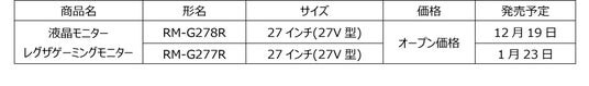 TVS REGZA株式会社は、4K Mini LEDレグザゲーミングモニター「RM-G278R」(27インチ/27V型)、および、4Kレグザゲーミングモニター「RM-G277R」(27インチ/27V型)を12月19日から順次発売します。
