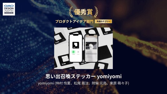 また、優秀賞としてプロダクトアイデア部門から2作品、思い出に物理的な保存手段を付与するデジタルステッカー「思い出召喚ステッカー yomiyomi」とAIによる影絵表現を家庭内で体験可能にする「かげえものがたり」が受賞。ビジュアル表現部門からの2作品は、AIと人の関係性を再考する映像表現「調べ物」とAIへの依存と感情の乖離をテーマに描いた映像作品「たまごやき」が受賞しました。そのほか両部門から合計9作品の入賞も決定いたしました。