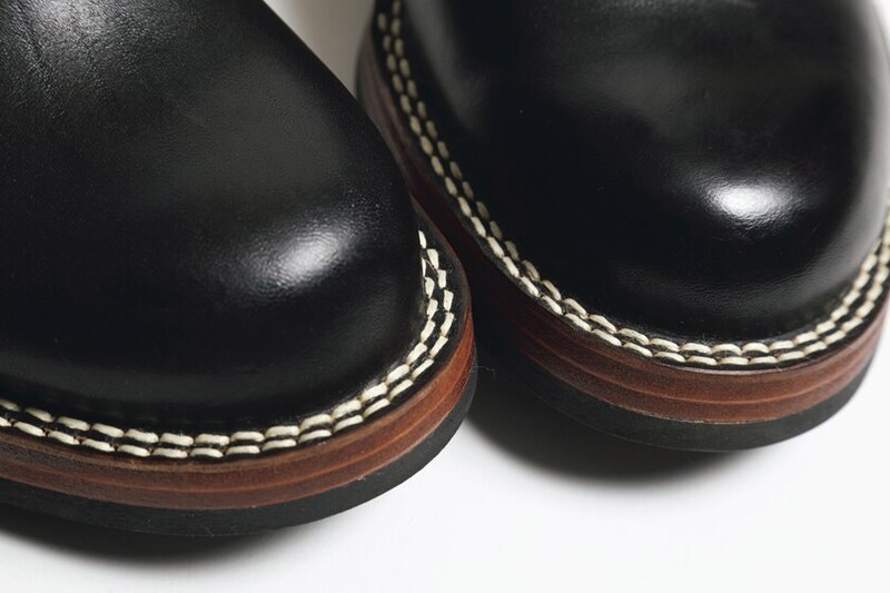 2重のステッチが施されたコバが、ワークブーツらしい顔つきを演出。水に強くフィット感の高いステッチダウン製法を採用している