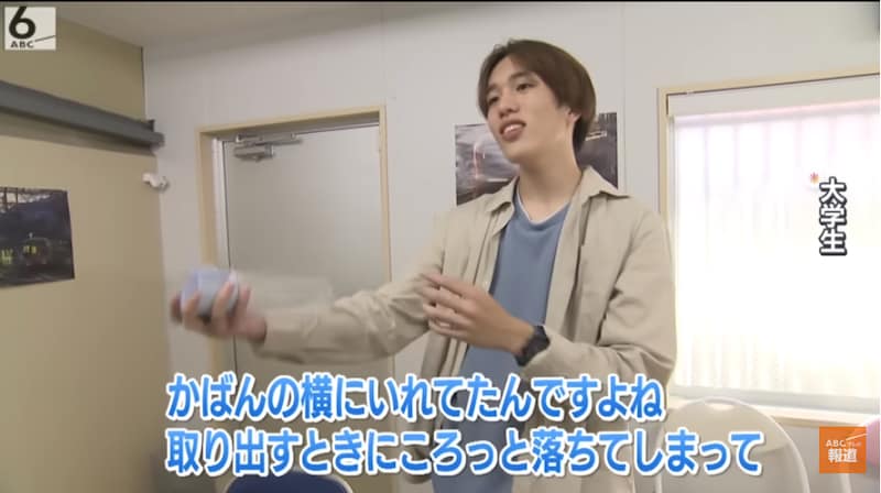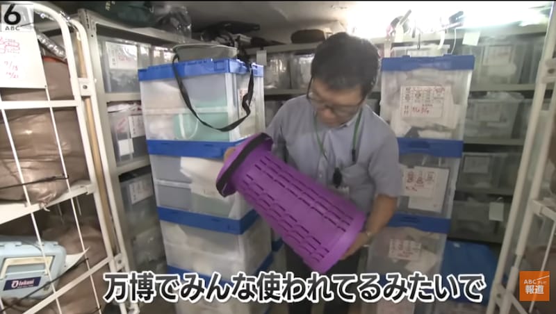 今年、特に増えたのが「大阪・関西万博」に関する忘れ物。折りたたみの椅子や万博関連の商品が目立つようになったといいます。センターを訪れた20歳の大学生が電車にうっかり置き忘れたというのが水筒。この水筒を持って、万博に通ったそうです。