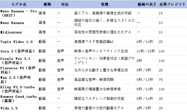 2025年11月20日の提供開始時点で主要モデルを統合済み。今後も新たな高品質モデルを随時追加予定で、画像・動画制作の自由度と表現力をさらに高めます。