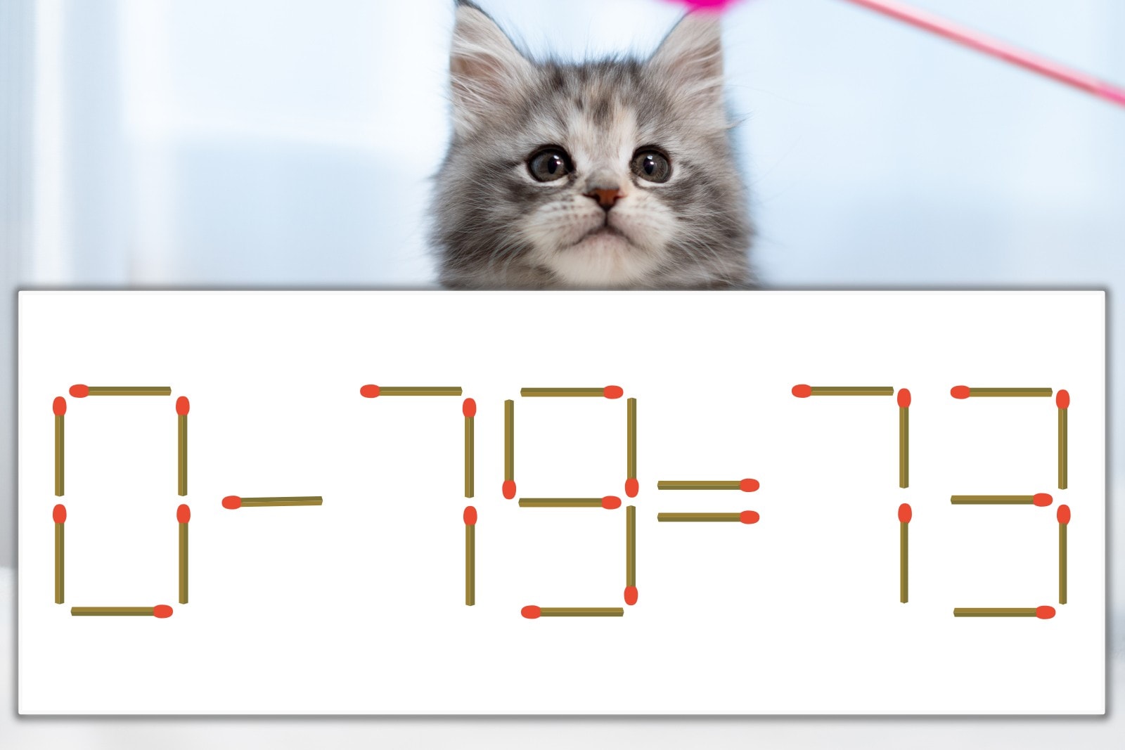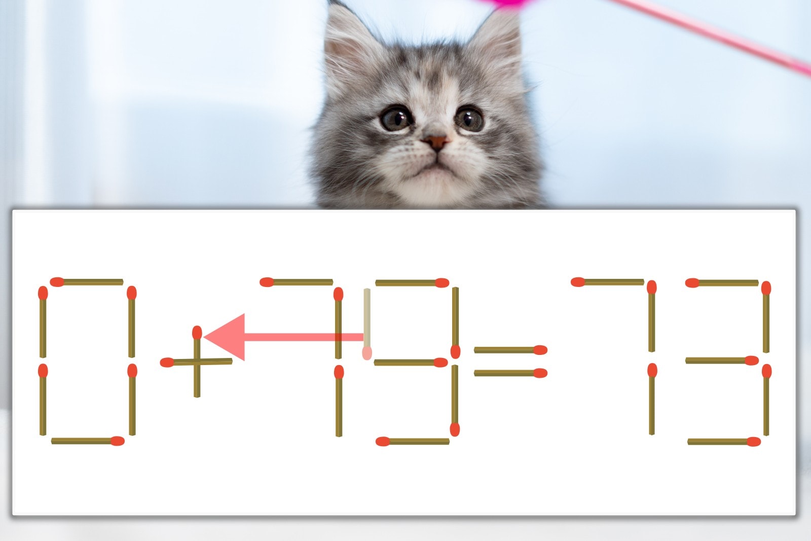 「9」を別の数字に変化させると答えが導き出せます。「9」のマッチ棒を1本移動して、「-」を「+」にしてみましょう。すると、「0+73=73」が成立します。
