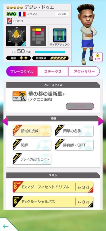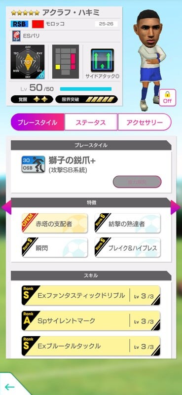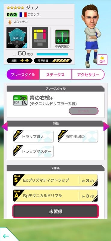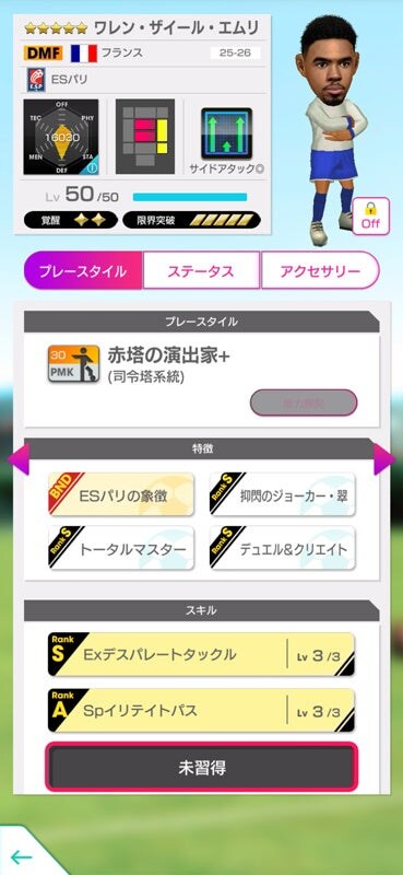 ★6監督「ルイリケ」は、得意戦術が一致しているCF選手・LWG選手・RWG選手の、CF・LWG・RWGすべてのポジション適正が赤になるアビリティ「FWバリエーション」を所持しています。