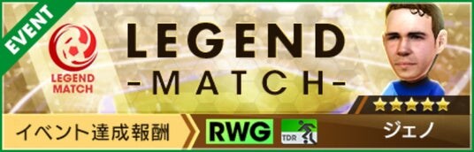 “レジェンドマッチ”は、レジェンドチームと対戦し、勝利ポイントゲージが一定量に達すると豪華なアイテムが獲得できるイベントです。