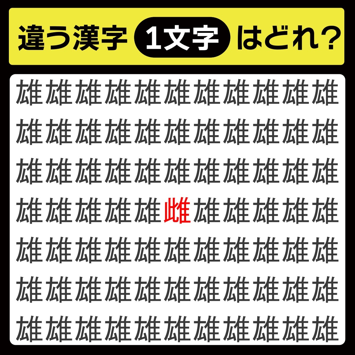 毎日配信中「毎日脳トレ」の時間です! 本日のクイズは「漢字のまちがい探し」に挑戦♪ 同じ漢字が並んでいるように見えますが、実は1つだけ違う漢字が……。よ~く探してみてください!