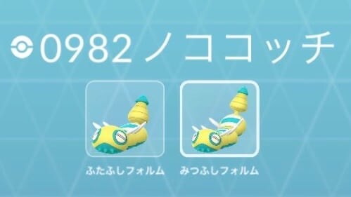 ノココッチには“ふたふしフォルム”と“みつふしフォルム”の2種類が存在。どちらも進化条件は存在せず、ランダムで分岐する仕様となっています。