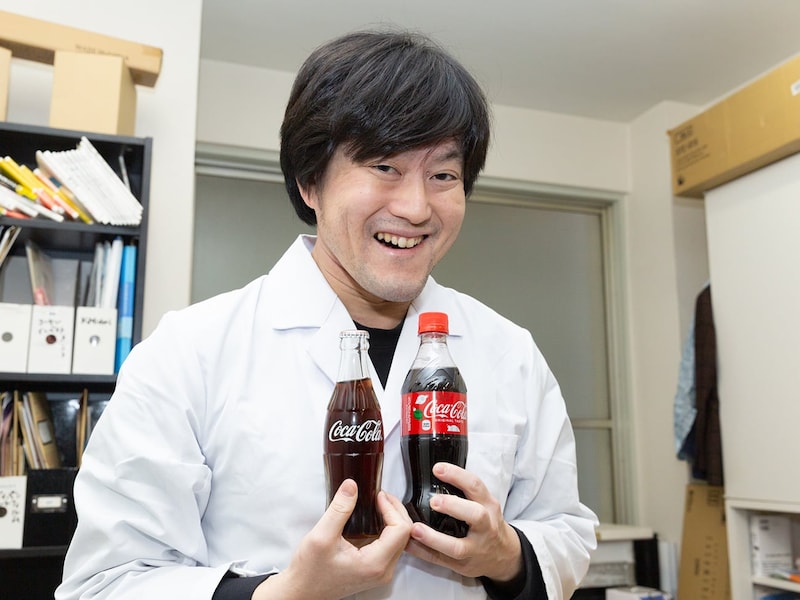 鈴木さんが開発した最新鋭マシンのAI味覚センサー「レオ」を使って、缶、ビン、ペットボトル、ソーダマシンのコカ・コーラの味をそれぞれ解析。味に違いがあるのかを科学的に検証してみることにしました!