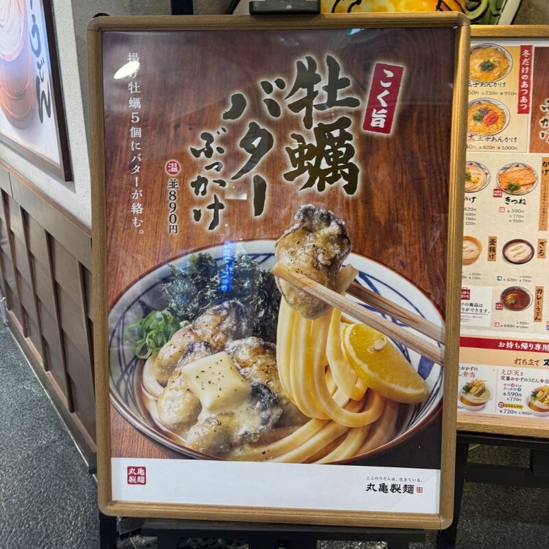 うどん専門店チェーンの丸亀製麺では、冬の期間限定で「こく旨 牡蠣バターぶっかけうどん」「牡蠣たまあんかけうどん」を提供中。