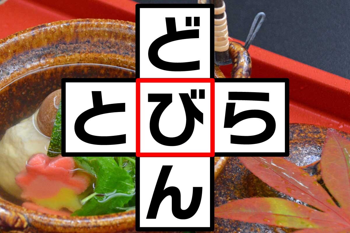 【問題】空欄に入るひらがなは? 【ヒント】タテ:日本の伝統的な食器の一種。「マツタケの〇〇〇蒸し」といえば……?ヨコ:英語で「door」といえば?