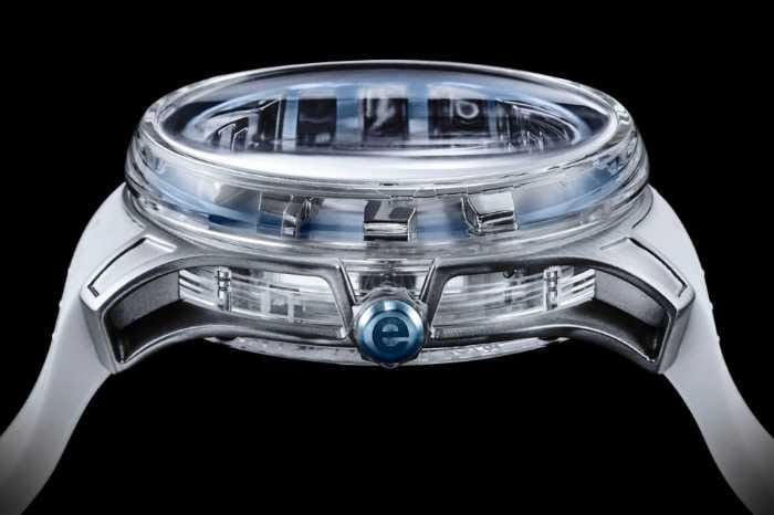 新作の「TOURBILLION」は、時計のダイヤル中央に搭載された複雑機構「トゥールビヨン」を見ることができるフルスケルトン仕様。