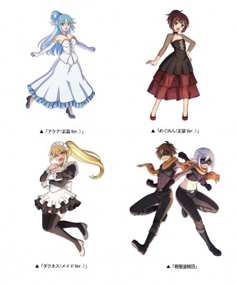 「アクア(正装Ver.)」「めぐみん(正装Ver.)」「ダクネス(メイドVer.)」「銀髪盗賊団」をはじめ、『この素晴らしい世界に祝福を!』の人気キャラたちが登場!さらに、コラボ期間中の限定アイテムとして「アクア(CV:雨宮天)」「めぐみん(CV:高橋李依)」「ダクネス(CV:茅野愛衣)」「カズマ(CV:福島潤)」の役ボイスがアイテムショップに登場しますのでお楽しみに!