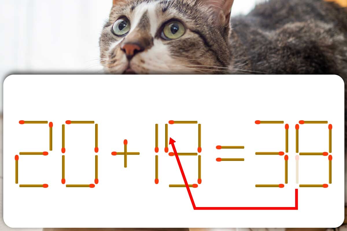 「8」のマッチ棒を1本、「3」に移動させて「9」を作り、「20+19=39」にする。※解答は複数ある場合があります。
