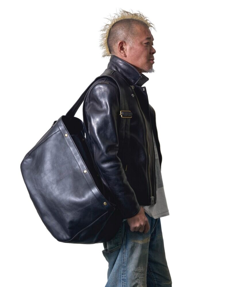モヒカン小川(以下、小川) その通り! あのバッグをベースに茶芯レザーを乗せて作ったんだよね。サイズが大きいから仕事に必要なものはすべて入れられるし、なんなら革ジャンも入れられる。革の使用量でいうと、これまでの茶芯シリーズのなかでも最大級で、革ジャンを作るのと変わらないくらいなんだよね。存在感も抜群だし、俺は「背負える革ジャン」ってキャッチーコピーをつけた。