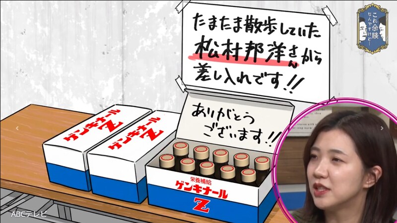 12月10日放送の「これ余談なんですけど・・・」では、ゲストたちが撮影現場での差し入れにまつわる余談を披露。3時のヒロイン・福田麻貴が「ある日、栄養ドリンクが置いてあって、そこの上の段ボールが開いたところに『たまたま散歩していた松村邦洋さんからの差し入れです』って書いてあった」と話すと、かまいたちは「そんなことあんの?」「出てるとかじゃなくて?」と驚愕。