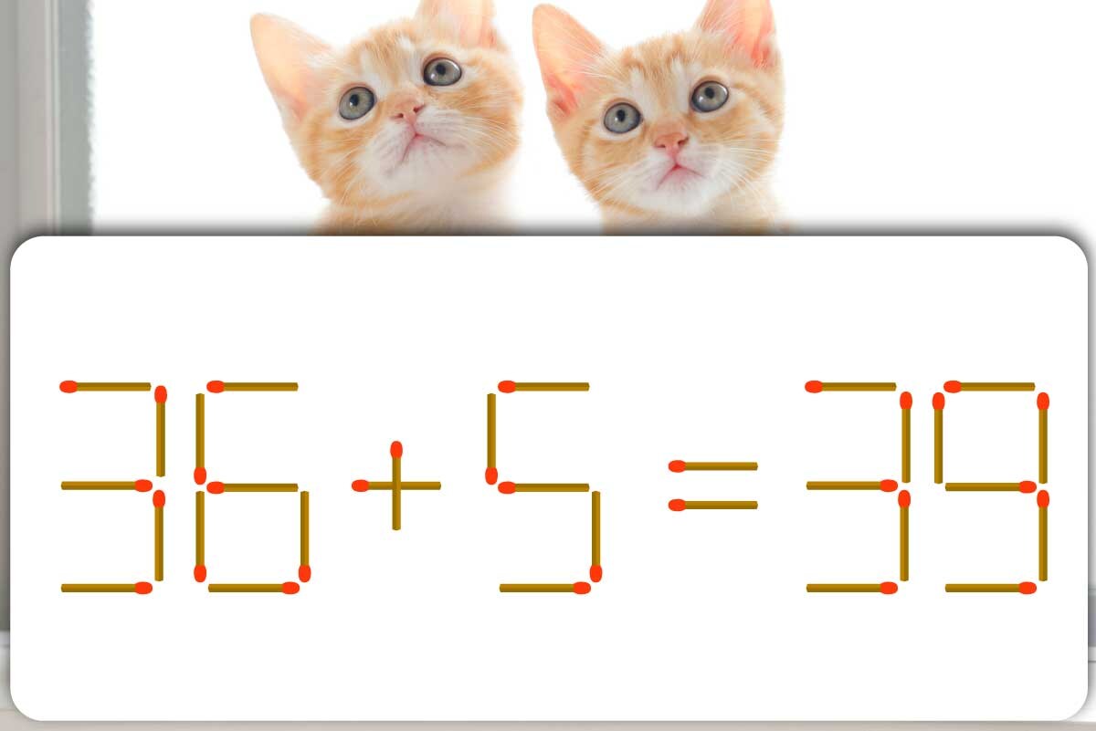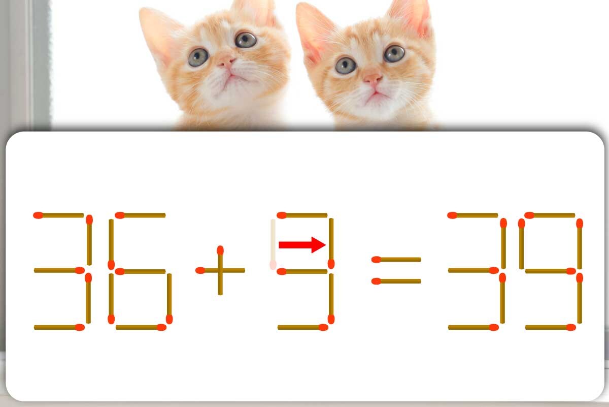 注目の「5」から、左上にある縦向きのマッチ棒。これをそのまま右にすーっとスライドさせると…数字が「3」に変化!あっという間に「36+3=39」と式が成立し、調整ができました。