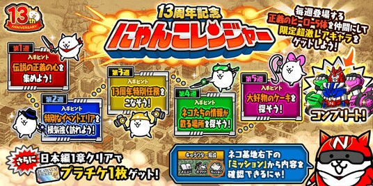 ・ステージクリアでネコカン20個をゲットできる13周年記念「バースデープレゼント!」ステージ開催!