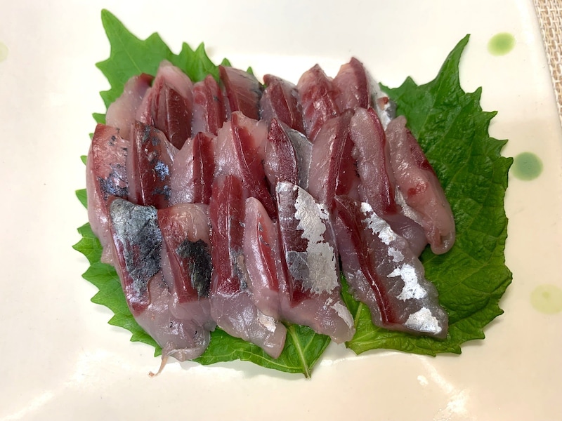 アジ科なので身自体の味がしっかりと濃く、皮目にはサバのような独特で濃厚なうま味があり、血合い部分にはカツオっぽい酸味がほのかにあってそれが良いアクセントになっています。