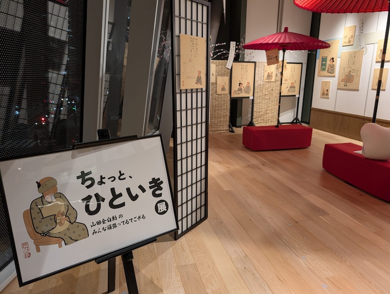 企画展には、人気クリエイターの山田全自動さんによる、 本展オリジナル作品を含むユーモラスなアート作品や、一般の方から寄せられた 「クスッと笑えて、ちょっと元気をもらえる“おつかれさま”のエピソード」を展示。 現代の「がんばりすぎてしまう日常」に、ほんの少しの“ひといき”を届けたいという想いから生まれたものばかり。