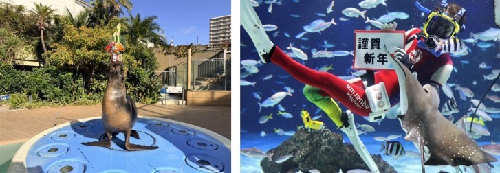サンシャイン水族館では、お正月限定イベント「Enjoy!AQUARIUM Happy Holidays~Happy New Year~」を開催。飼育スタッフが生き物の自然な姿や、人との関わり合いについて、新たなスタイルで楽しく・わかりやすく紹介し、“新しい発見”を届ける「いきものディスカバリー」をHappy New Year ver.で実施。お正月らしい小物を使用したアシカトレーニングなど、縁起担ぎにぴったりな普段と違ういきものディスカバリーを楽しめる。