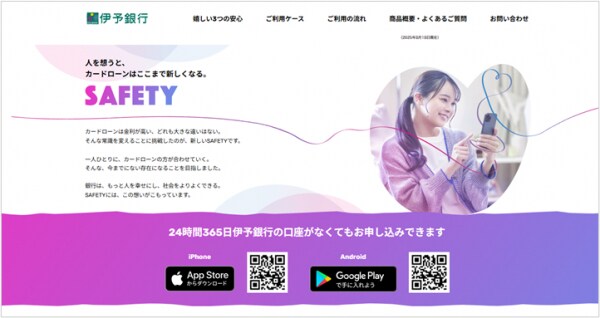 当行が提供するカードローンアプリ「 SAFETY 」は、“銀行らしい安心” と “アプリの利便性” を融合させたサービスです。24時間365日申し込み可能で、銀行口座をお持ちでなくてもアプリから利用できます。
