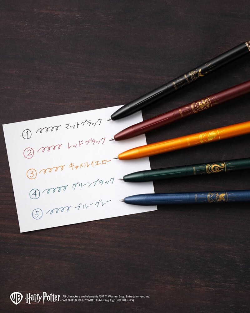 金属ボディの高級感あふれるボールペン。ハリーポッターに登場する4寮に合わせたデザインと、ヘドウィグが描かれたマットブラックの5種類。
