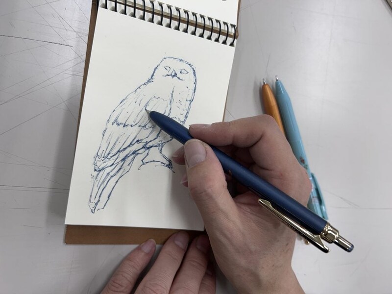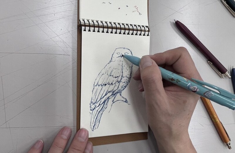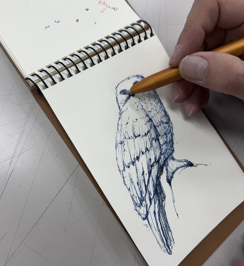 今回、サラサグランドの〈ハリー・ポッター〉コラボモデルを使って、画家・小林聡一先生に「ヘドウィグ」のイラストを描いていただきました。