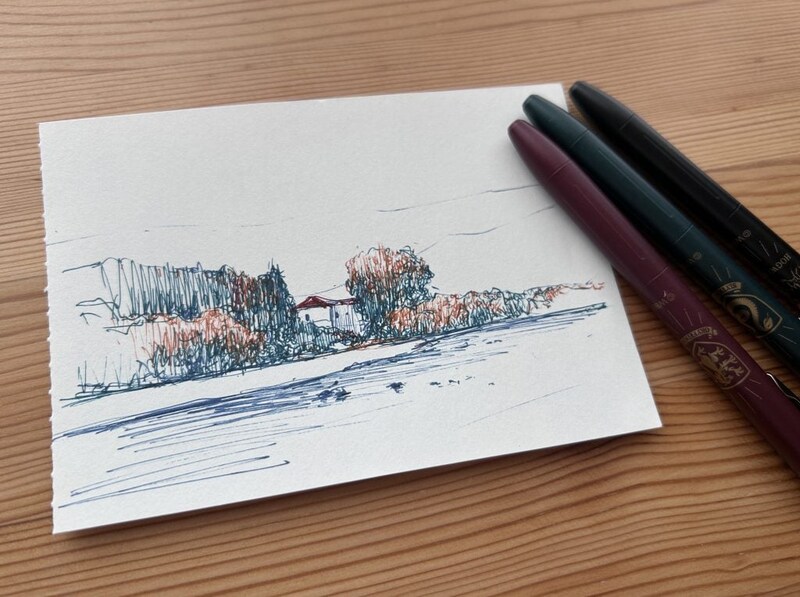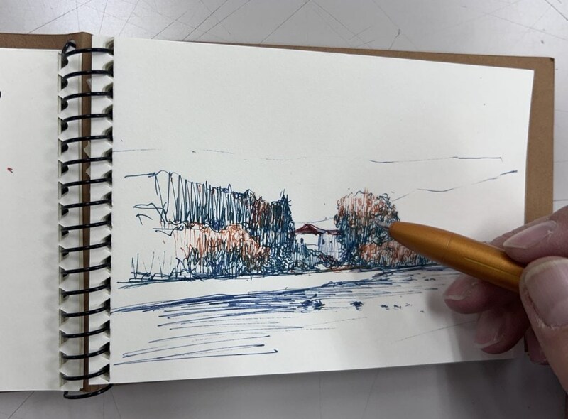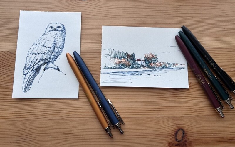 ハッフルパフのキャメルイエローで目を描きこんで完成。「サラサグランドは、ほどよく重さがあるので手元が安定します。1色でも重ねて濃淡を出せるので絵も描きやすいです。」と小林先生。