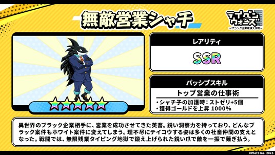 IPコンテンツの企画・制作・ビジネス展開を行う株式会社Plott(本社:東京都千代田区、代表取締役:奥野翔太、以下「Plott」)は、Plott Gamesが運営する「テイペンウォーズ~ブラック企業破壊大作戦~」が、リリース2周年を迎えたことをお知らせいたします。