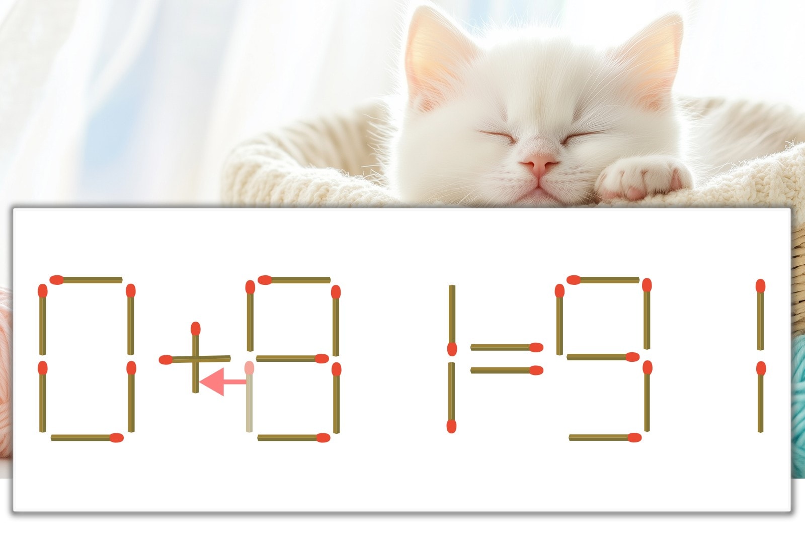 「8」を別の数字に変化させると答えが導き出せます。「8」のマッチ棒を1本移動して、「-」を「+」にしてみましょう。すると、「0+91=91」が成立します。