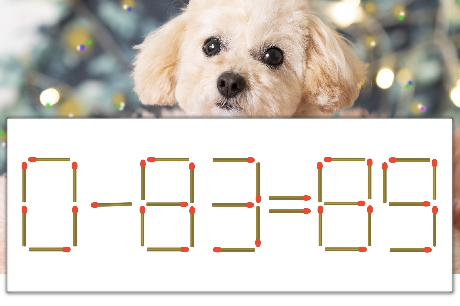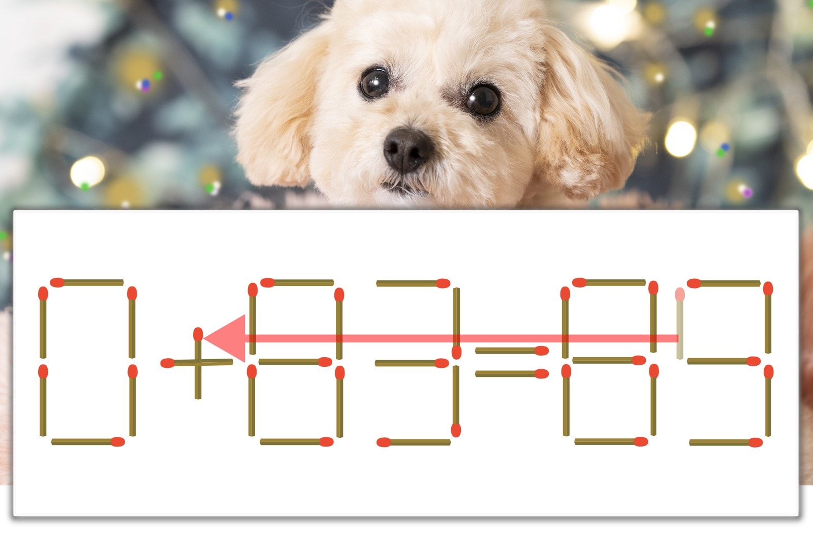「9」を別の数字に変化させると答えが導き出せます。「9」のマッチ棒を1本移動して、「-」を「+」にしてみましょう。すると、「0+83=83」が成立します。