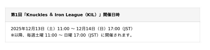 ■今週末より、チームで挑む新コンテンツ「Knuckles & Iron League(KIL)」第1回が開催!