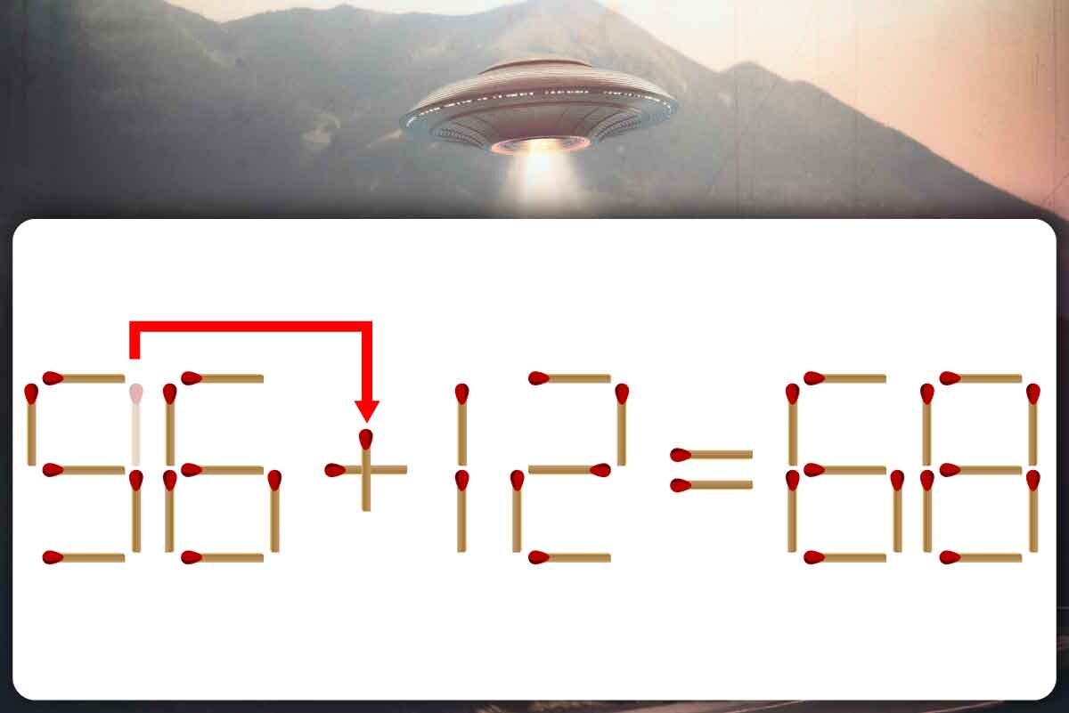 「9」のマッチ棒を1本「-」に移動させて「+」を作り、「56+12=68」にする。